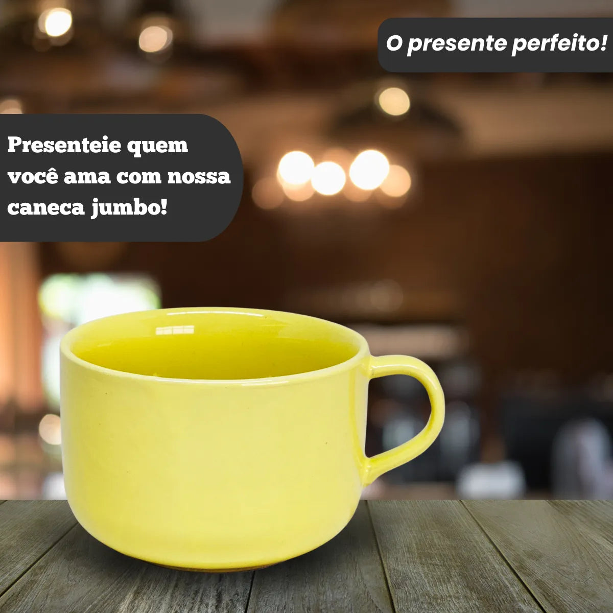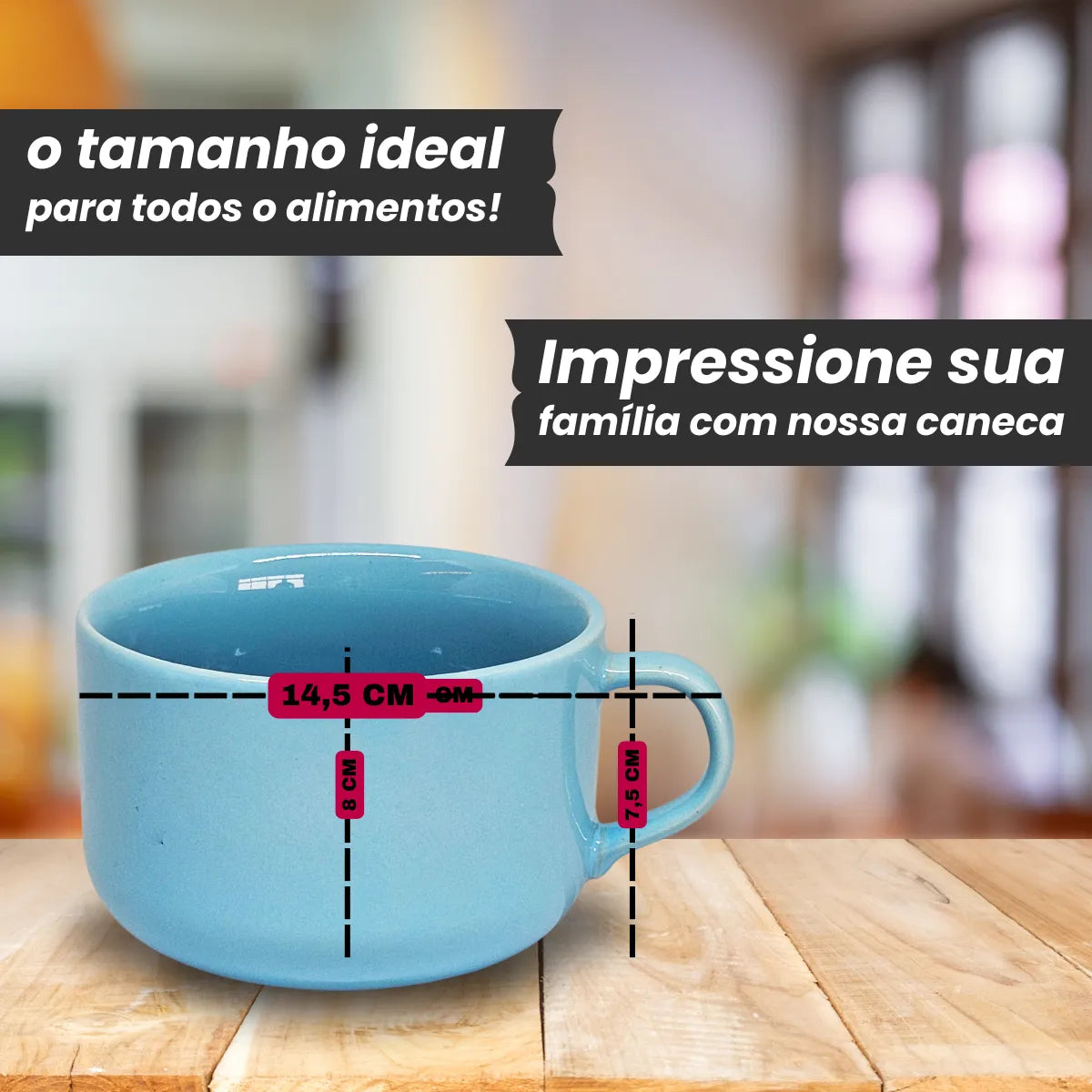 A Caneca Jumbo de Porcelana 450ml é perfeita para quem busca versatilidade e elegância no dia a dia. Com tamanho generoso, ela é ideal para sopas, cereais, açaí, frutas, sobremesas e até aquela bebida favorita bem servida.