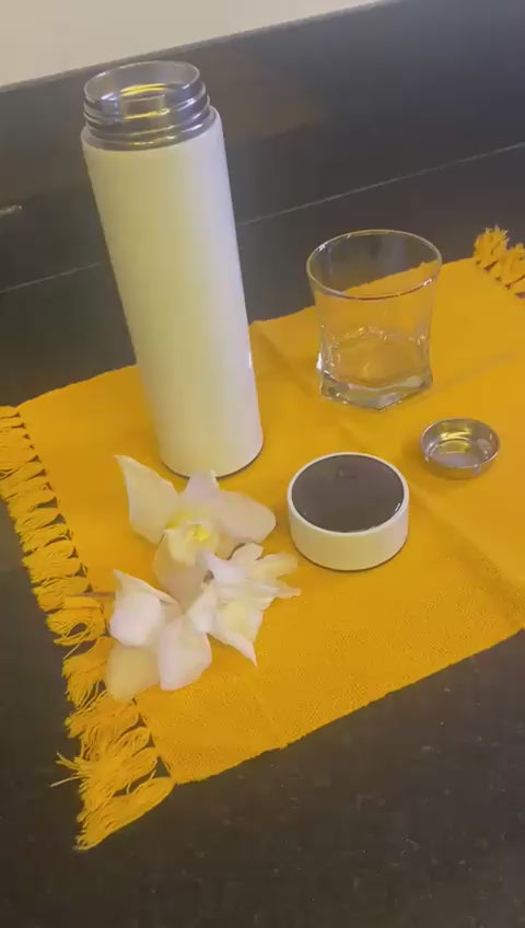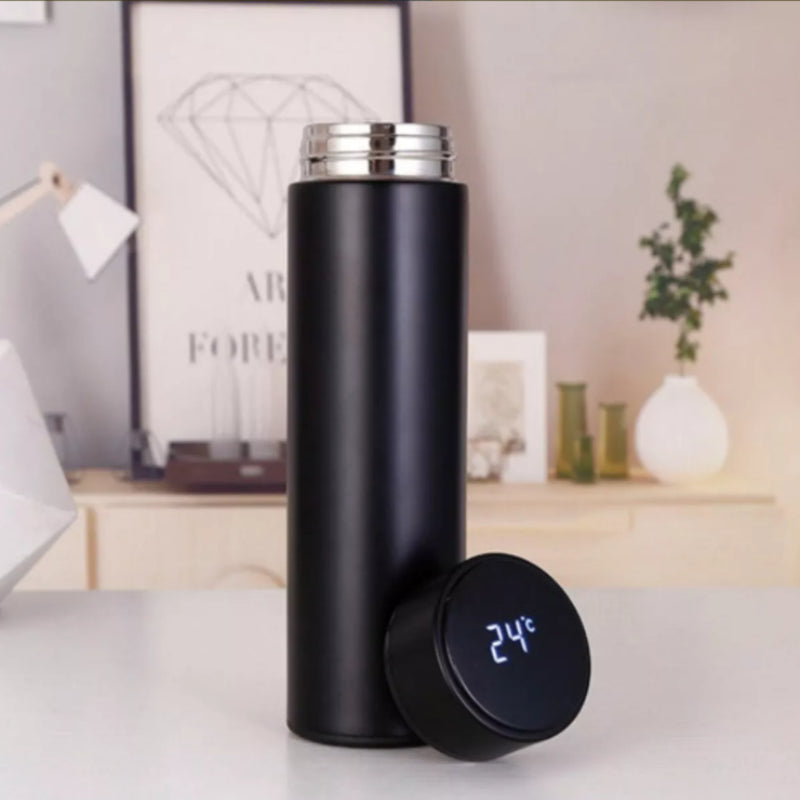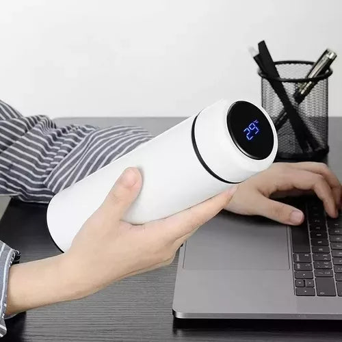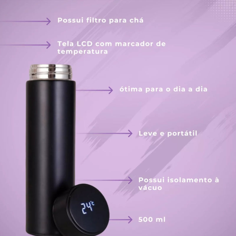Garrafa Térmica com Visor LED Smart Cup. Uma garrafa de 500ml com display LED para verificação da temperatura interna, design inovador e bateria com vida útil de até 500 dias. Benefícios * Fácil Armazenamento: Compacta e prática para levar a qualquer lugar. * Fácil Limpeza: Design que facilita a higienização. * Térmica: Mantém líquidos quentes ou frios por longos períodos. * Visor LED: Permite verificar a temperatura do líquido dentro da garrafa a qualquer momento. * Validade Indeterminada: Produto durável e de alta qualidade, com longa vida útil. Ideal para quem busca praticidade e tecnologia no dia a dia, mantendo suas bebidas na temperatura ideal por mais tempo.