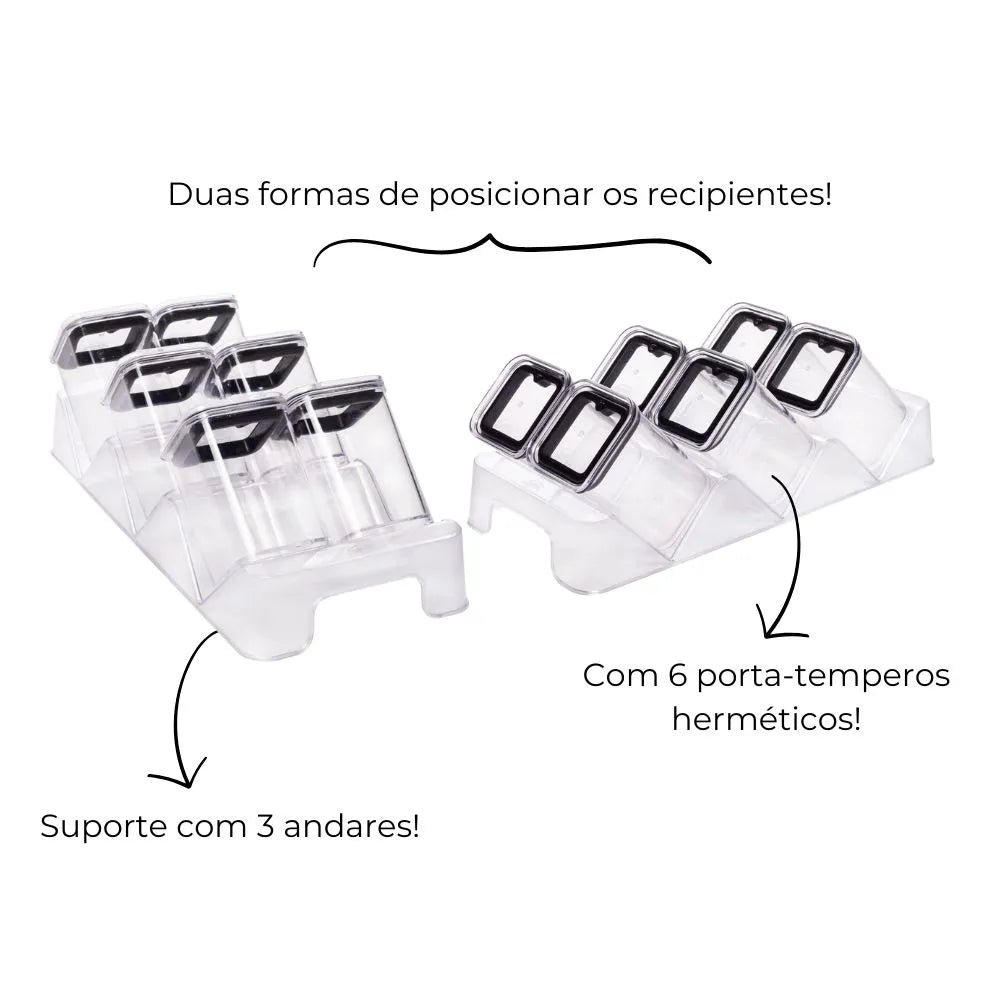 O Conjunto com 6 Porta Condimentos da Plasútil é ideal para quem valoriza uma cozinha bem organizada e com fácil acesso aos temperos do dia a dia. Os potes são fabricados em material durável, com tampas firmes que preservam o aroma e o frescor dos condimentos. O suporte em formato de escada feito em acrílico transparente permite que todos os potes fiquem visíveis e acessíveis, trazendo modernidade e funcionalidade ao ambiente.