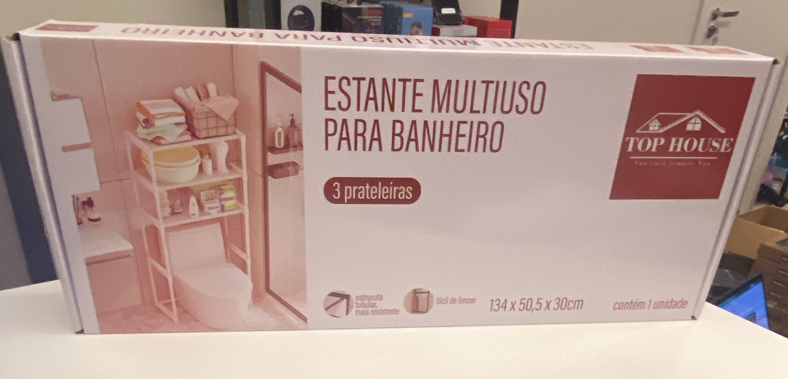 Feita em aço de alta durabilidade com pintura resistente à umidade, ela é fácil de montar, se adapta a banheiros pequenos ou grandes, e ainda dá aquele upgrade visual no espaço.