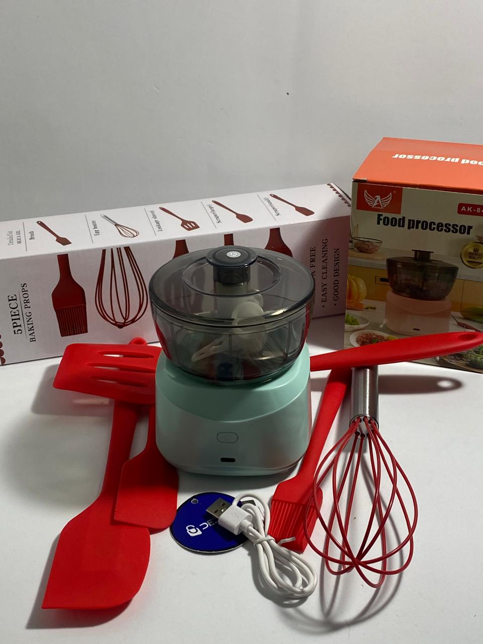 Facilite seu dia a dia com o Kit Triturador Automático 350ml e Talheres de Cozinha 5 Peças. O triturador é perfeito para picar alimentos com rapidez e precisão, enquanto os talheres resistentes a altas temperaturas garantem segurança e praticidade.