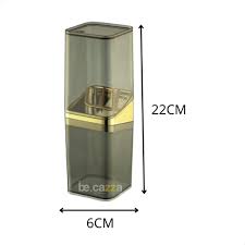 O Porta Escova com Tampa Slim Preto e Dourado une o design moderno com uma paleta elegante que traz requinte discreto ao ambiente. Compacto e funcional, ele protege as escovas de respingos e contaminações, mantendo a bancada sempre organizada e visualmente harmônica.