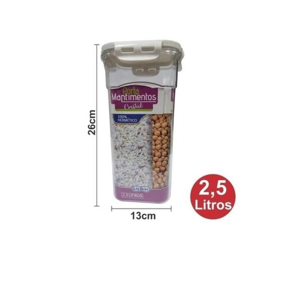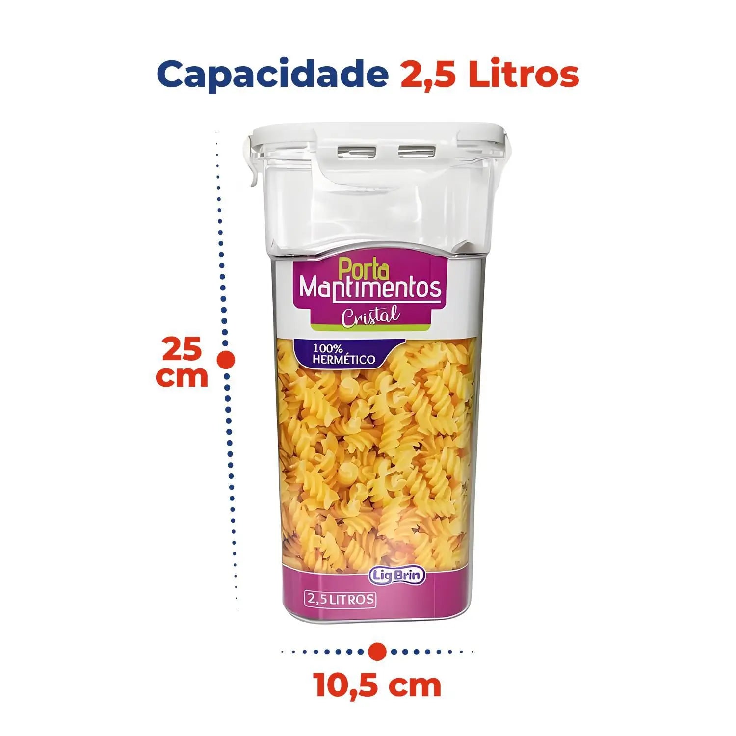 O pote Hermético Cristal 2,5 Litros é perfeito para armazenar mantimentos com segurança e estilo. Fabricado em material resistente e transparente, ele facilita a visualização dos alimentos e ainda conta com travas laterais firmes que garantem vedação eficiente e frescor prolongado.