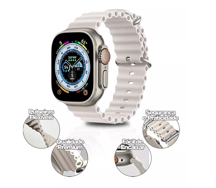 - Conectividade: Receba e faça chamadas, além de notificações de aplicativos como WhatsApp, Instagram e SMS diretamente no seu pulso. Controle suas músicas e vídeos sem precisar tirar o celular do bolso.