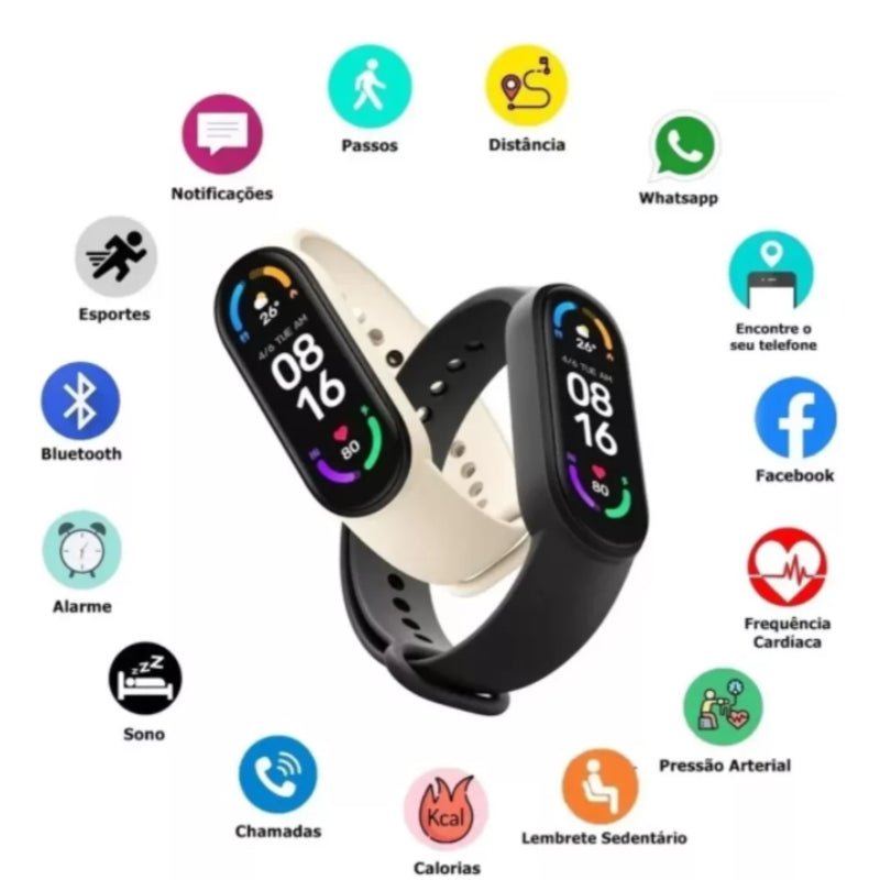A Smart Band 6 é a evolução perfeita para quem busca um dispositivo inteligente para acompanhar sua rotina diária. Com melhorias significativas em relação aos seus antecessores, este smartwatch oferece mais conforto e funcionalidade. Um dos principais destaques é o carregador magnético: basta aproximar a extremidade da unidade de carga do dispositivo para que a bateria comece a carregar automaticamente. Além disso, a tela OLED da Smart Band 6 apresenta cores vibrantes e alto contraste, garantindo uma excelente visualização dos dados mesmo sob luz solar direta. Para os entusiastas de esportes e saúde, a Smart Band 6 se destaca pela precisão dos seus sensores. Ela é equipada para monitorar uma ampla gama de atividades físicas e parâmetros de saúde, proporcionando dados detalhados e confiáveis para ajudar você a atingir seus objetivos de bem-estar.